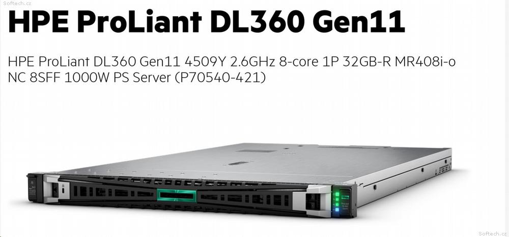 HPE PL DL360g11 4509Y (2.6G, 8C) 1x32G (P64706) MR408i-o, 4G 8-10SFF 1x1000W 2x1G P70540-421 RENEW