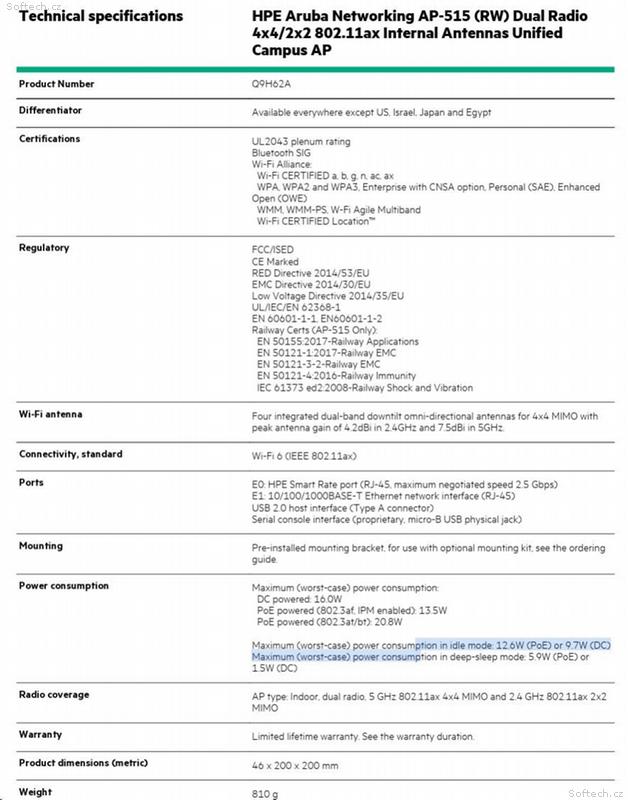 Série přístupových bodů Aruba 510 s technologií 802.11ax vysokorychlostní přístup pro mobilní zařízení. Rychlosti dosahují až 4.8 Gb/s v pásmu 5GHz a až 575 Mb/s v pásmu 2,4Ghz. Každý AP podporuje až 256 klientských zařízení.