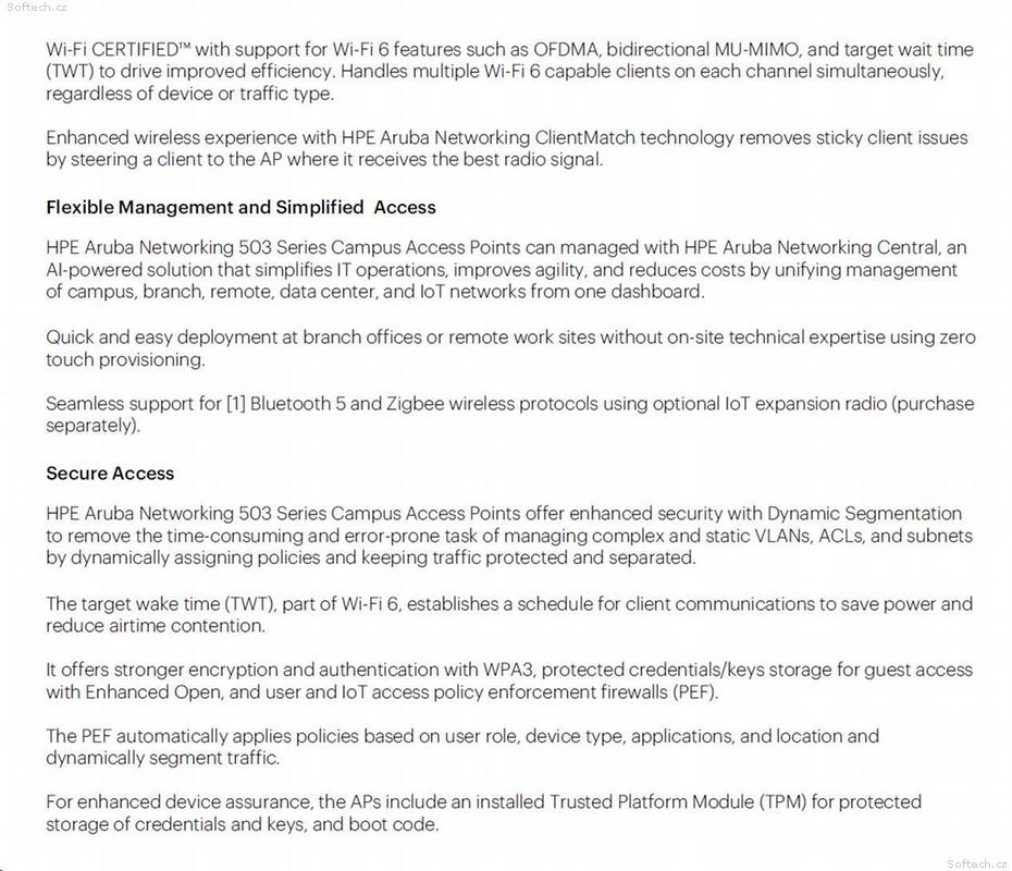 The Aruba 503 Series supports a Zero Trust/Secure Access Service Edge (SASE) architecture to better protect user authentication and wireless traffic. Select capabilities include: