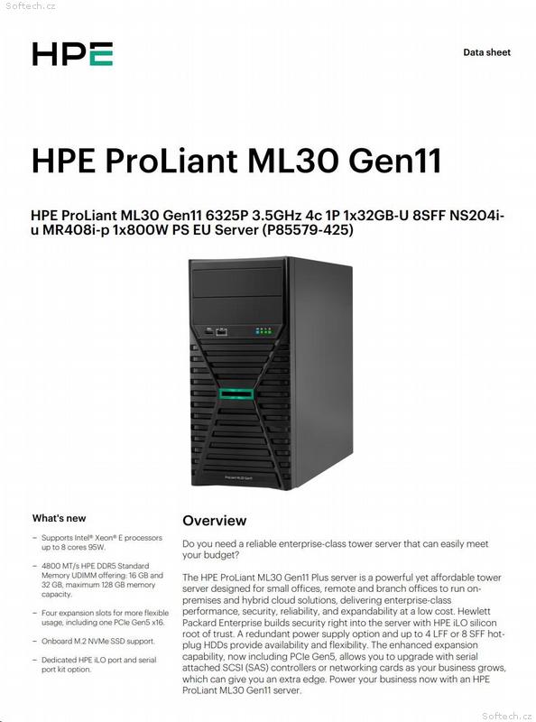 HPE ProLiant ML30 Gen11 Plus představuje ideální první server pro rostoucí firmy.