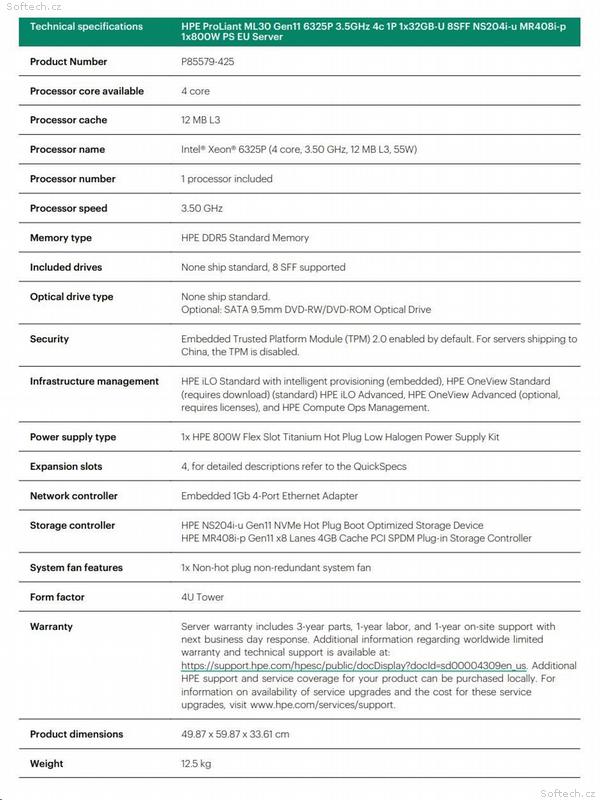 Záruka: 3 rok díly, 1 rok práce, 1 rok on-site, odezva následující pracovní den.