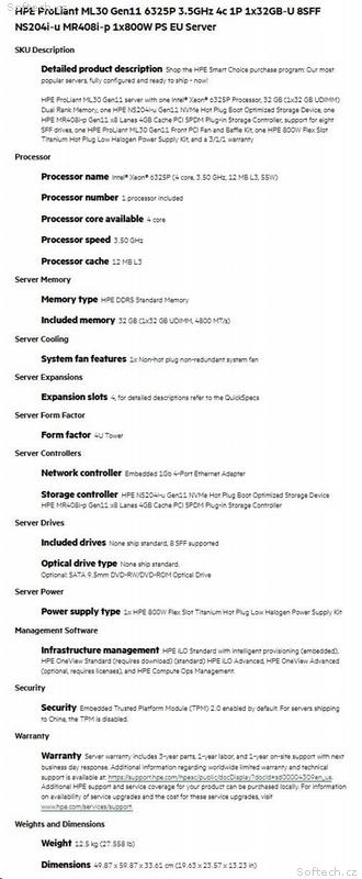 CPU: Intel Xeon 6325P 4-Core (3.50GHz, 12MB L3 cache).