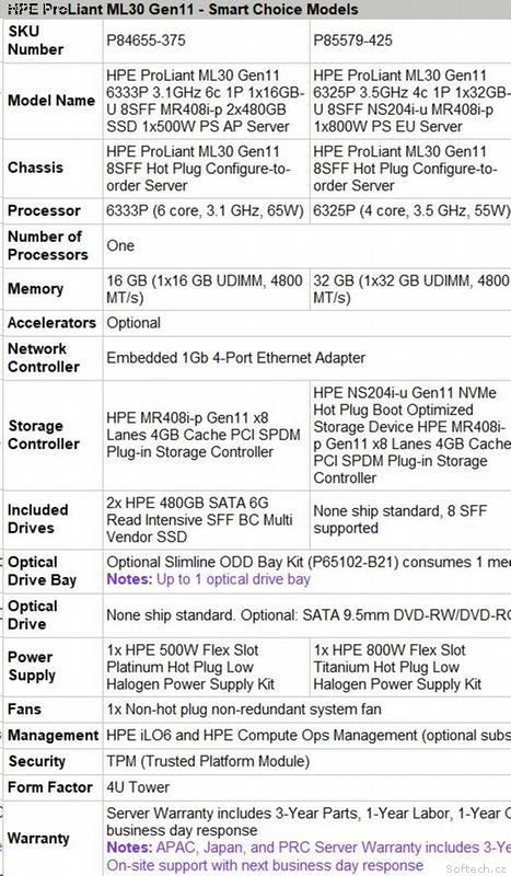 • HPE ML30 G11 6325P, 32GB, 2x480GB NVME, MR408i-p
