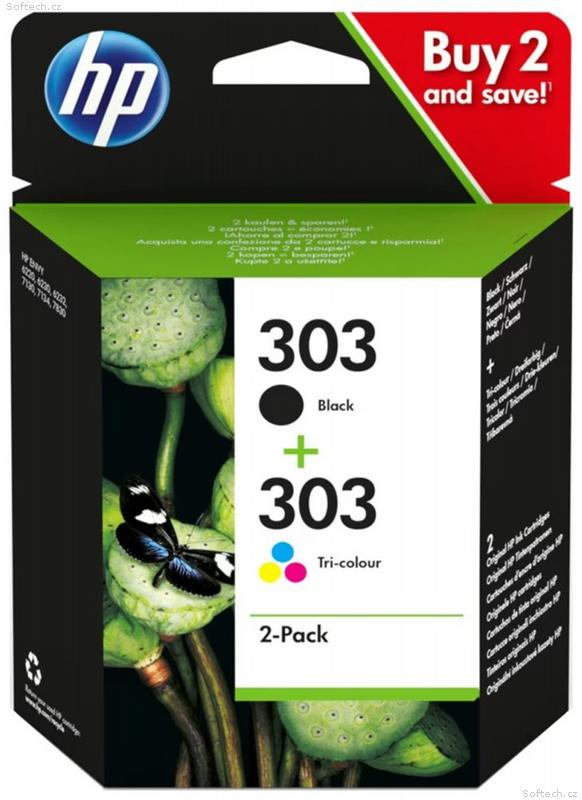 HP Ink Cartridge 303, Black, Tricolor, 200, 165 stran, 2-Pack