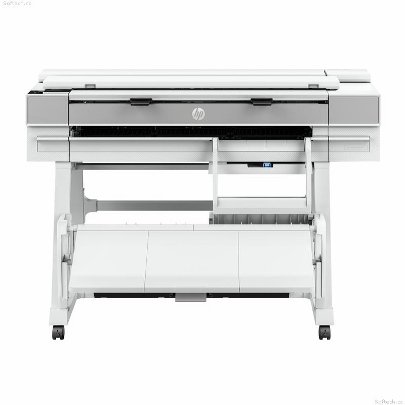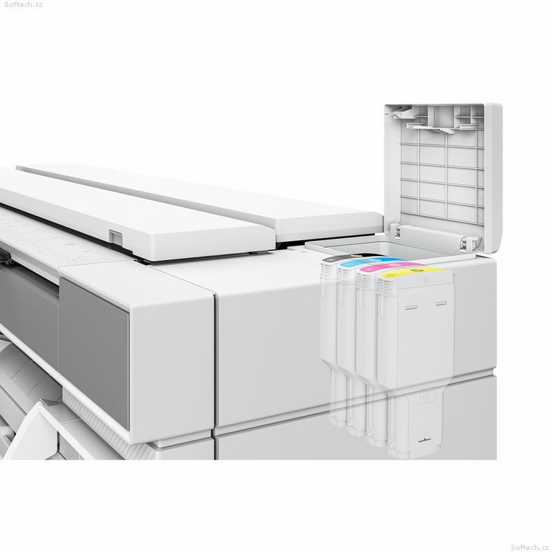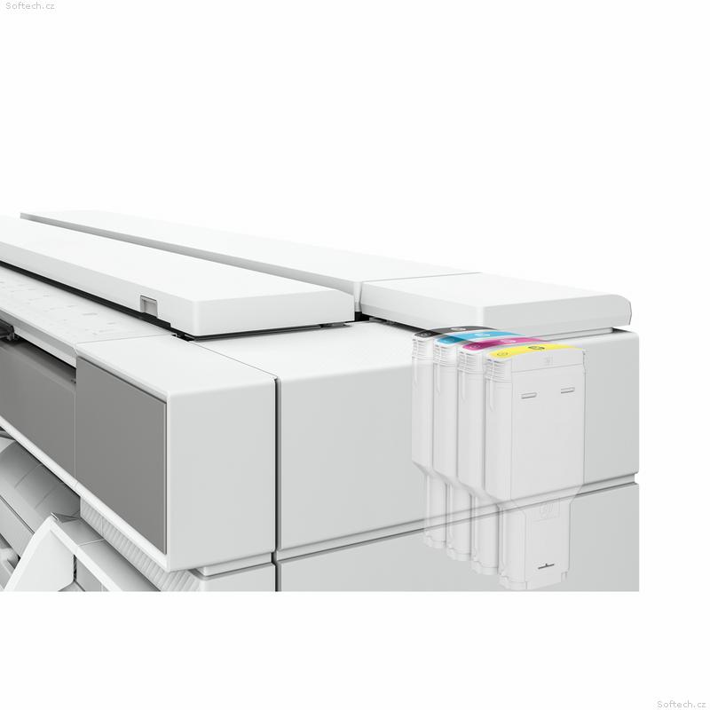 Multifunkční tiskárna HP DesignJet T950, tisková hlava, zaváděcí inkoustové kazety, podstavec tiskárny, trn, příručka, záruční leták, napájecí kabel