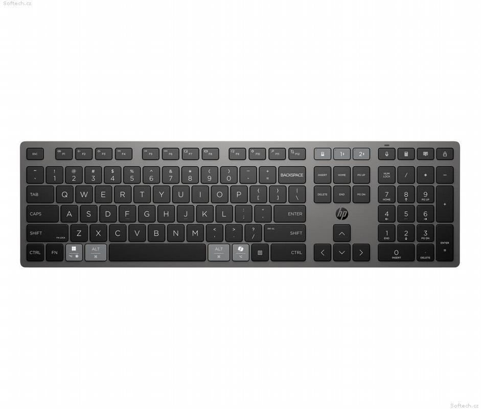 HP 725 - Klávesnice - více zařízení, dobíjecí, napájené pomocí SuperCapacitor - full size - bezdrátový - 2.4 GHz, Bluetooth - česká, slovenská - nightfall black