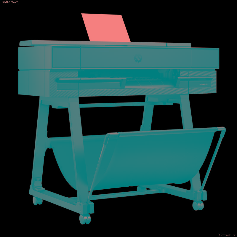 Tiskárna HP DesignJet , tisková hlava, zaváděcí inkoustové kazety, podstavec tiskárny, trn, příručka, záruční leták, napájecí kabel