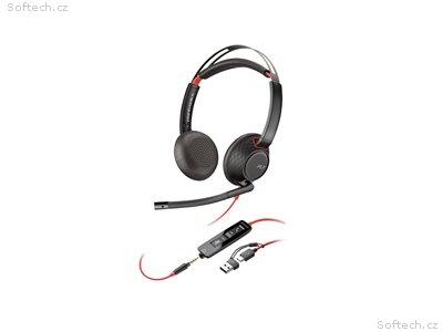 Poly Blackwire 5220 náhlavní souprava, 3.5 mm jack + USB-C, A adaptér, stereo