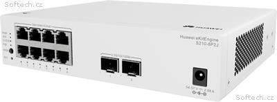Huawei S210-8P2J je spolehlivý managovatelný cloud L2 PoE switch s kapacitou přepínání 26Gbps, (8) Gbit PoE+ porty a (2) 2.5G SFP sloty. RJ45 porty podporují PoE+ s budgetem 128W. Switch podporuje správu přes lokální webové rozhraní i cloudovou správu (eKit SNC / eKit mobilní aplikace). Maximální spotřeba energie zařízení je 17,6W (bez PoE zátěže).