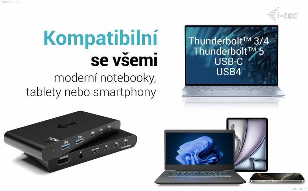 Tato univerzální dokovací stanice kombinuje funkcionalitu klasické dokovací stanice s pokročilým KVM přepínačem, který umožňuje plynulé přepínání mezi dvěma připojenými hostiteli. Díky dvojitému Power Delivery až 2× 100 W můžete nabíjet oba připojené počítače současně, zatímco sdílíte jednu sadu periferií – monitor, klávesnici, myš a další příslušenství.