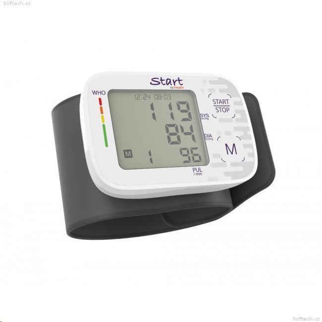 Tlakoměr iHealth Start stačí jednoduše nasadit na zápěstí ruky a sledovat průběh automatického měření na integrovaném displeji. Hodnoty systolického a diastolického tlaku a počet tepů za minutu se ihned po změření zobrazí na dobře čitelném displeji a automaticky se uloží do paměti přístroje.
