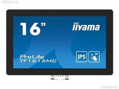 iiyama ProLite TF1615MC-B1 - LED monitor - 15.6" - open frame - dotykový displej - 1920 x 1080 Full HD (1080p) - IPS - 450 cd/m? - 1000: 1 - 25 ms - HDMI, VGA, DisplayPort - černá