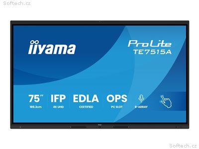 iiyama ProLite TE7515A-B1AG - 75" Trída úhloprícky (74.5" zobrazitelný) displej LCD s LED podsvícením - interaktivní digital signage - s dotykový displej (více dotyku) / 8-mikrofonový array / volitelná funkce slot-in PC - 4K UHD (2160p) 3840 x 2160 - cerná (rám), matný povrch