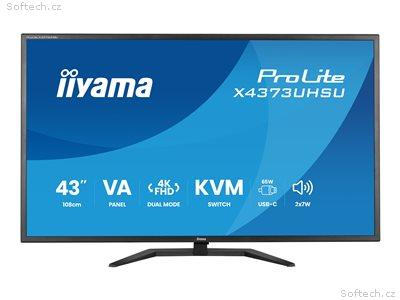 iiyama ProLite X4373UHSU-B2 - LED monitor - 43" (42.5" zobrazitelný) - 3840 x 2160 4K @ 60 Hz - VA - 450 cd, m? - 4000:1 - HDR10 - 3 ms - 2xHDMI, DisplayPort - reproduktory - matná, cerná