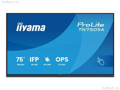 iiyama ProLite TN7505A-B1AG - 75" Trída úhloprícky (74.52" zobrazitelný) displej LCD s LED podsvícením - interaktivní digital signage - s dotyková obrazovka (multi touch) / volitelná funkce PC slotu - 4K UHD (2160p) 3840 x 2160