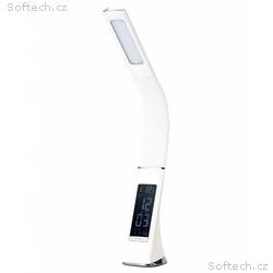 Moderní LED stolní lampička s ohebným ramenem, dotykovým ovládáním jasu a informačním LCD panelem, který zobrazuje údaje o aktuálním času, datu a teplotě. Pokud by vás LCD panel rušil, je možné jej úplně vypnout. Napájení je realizováno skrze přiložený adaptér, nebo přímo z USB portu počítače či powerbanky. Součástí balení je USB kabel o délce 120 cm.