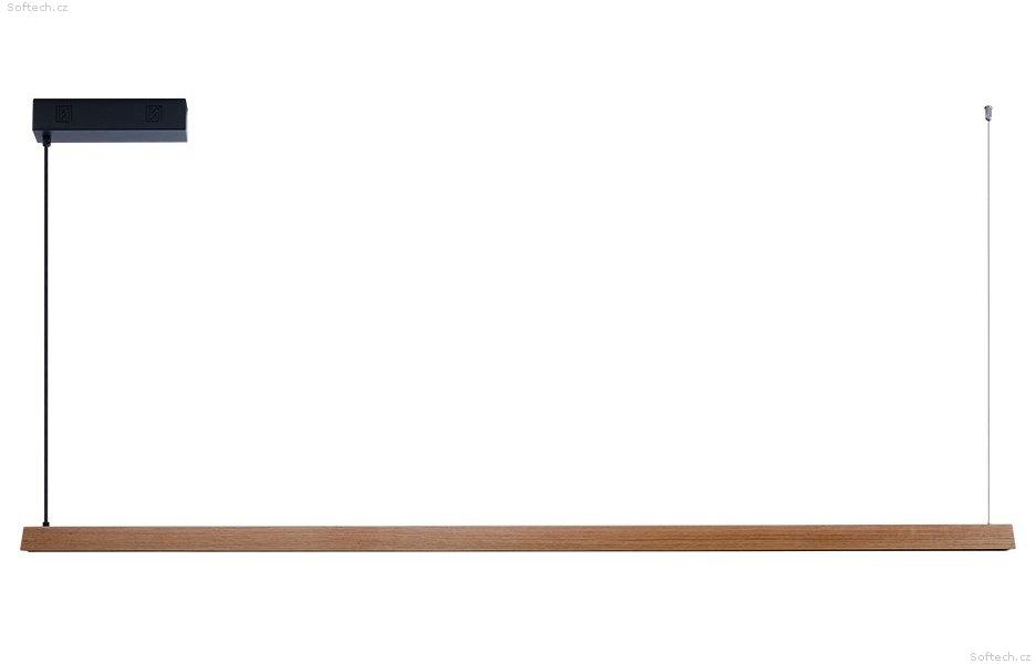 S délkou 202 cm a kombinací přímého a nepřímého osvětlení UP/DOWN vytváří ideální atmosféru v kuchyni, jídelně nebo obývacím pokoji. Dubové dřevo s černou montáží dodává interiéru elegantní a moderní vzhled při zachování přírodního charakteru materiálu.