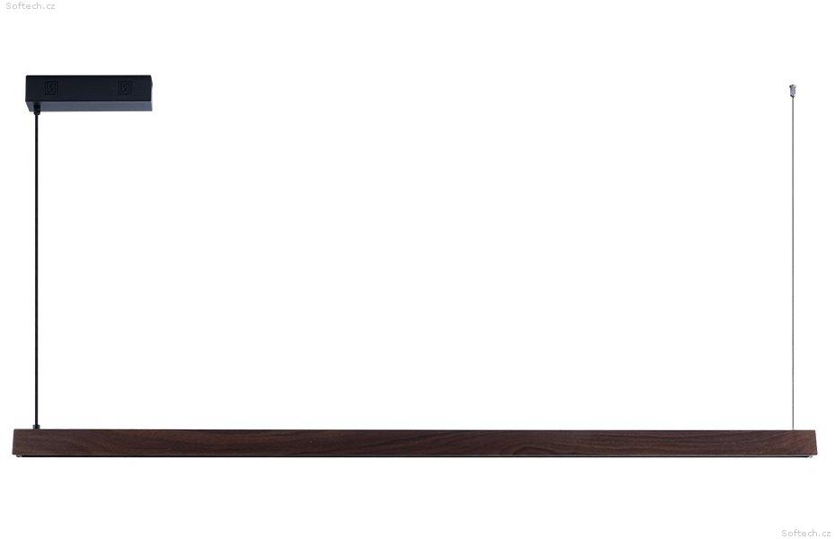 S délkou 202 cm a kombinací přímého a nepřímého osvětlení UP/DOWN vytváří ideální atmosféru v kuchyni, jídelně nebo obývacím pokoji. Ořechové dřevo s černou montáží dodává interiéru elegantní a moderní vzhled při zachování přírodního charakteru materiálu.