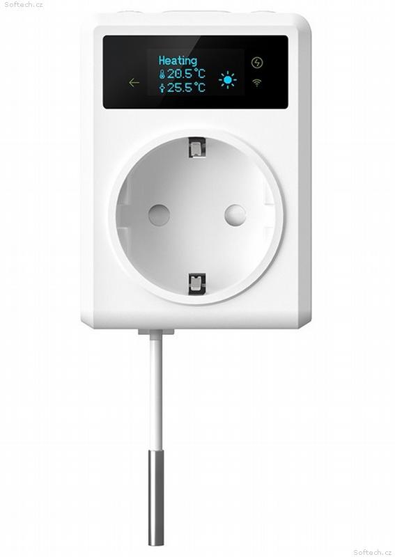 Zásuvka je vybavena dvěma externími NTC teplotními čidly. Kratší čidlo o délce 5 cm je vhodné pro měření v bezprostřední blízkosti zásuvky, zatímco 3metrové čidlo umožňuje monitorovat teplotu ve vzdálenějších místech místnosti.