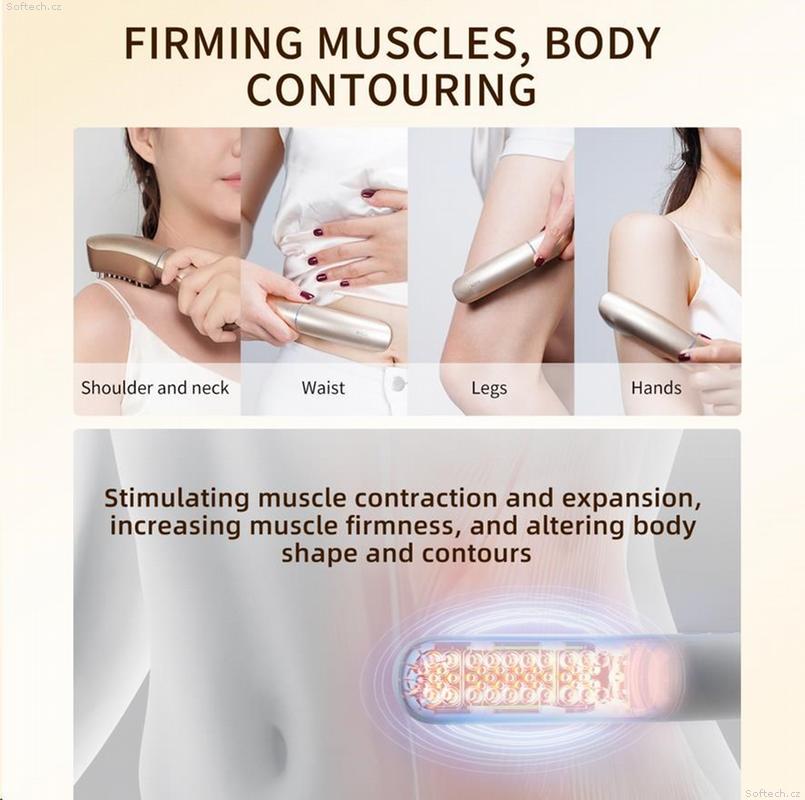 Péče o tělo (Režim SNE): Intenzivní pulzy simulují masáž hlubokých tkání, stimulují svalové kontrakce, a tím pomáhají zpevnit a vytvarovat problematické partie jako jsou paže, břicho nebo stehna.