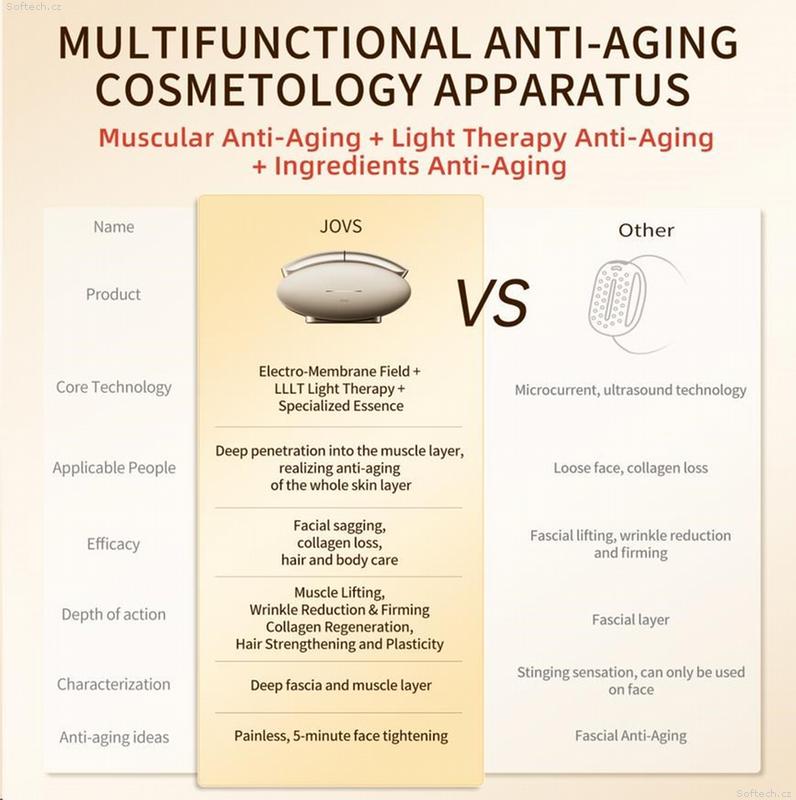 Zažijte revoluci v domácí péči a objevte tajemství trvale mladistvého vzhledu. Představujeme vám JOVS Slimax, multifunkční omlazující přístroj, který jako první na světě cílí na skutečnou příčinu stárnutí – povolené obličejové svaly. Zapomeňte na povrchní řešení. Prémiová značka JOVS přináší inovativní technologii, která je domácí alternativou k vyhledávaným, ale nákladným procedurám, a poskytuje vám sílu profesionální péče ve vašich rukou.