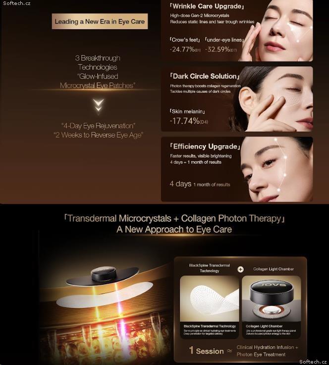 Oční okolí je nejjemnější a nejzranitelnější částí naší tváře, která stárne až 8krát rychleji než zbytek obličeje. Dopřejte mu péči, kterou si zaslouží, a objevte revoluční řešení, které přináší výsledky srovnatelné s profesionálními klinikami. Představujeme vám JOVS RevivaEye, první mikrokrystalické oční náplasti s technologií "Blackthorn" a světelnou terapií na trhu. Značka JOVS opět kombinuje špičkovou vědu a luxusní péči, aby vám poskytla komplexní omlazení očního okolí z pohodlí domova.