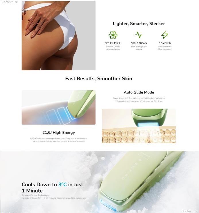 Revoluční chlazení na 10 °C: Pokročilá chladicí technologie zaručuje naprosto bezbolestné a komfortní ošetření bez pálení a podráždění.