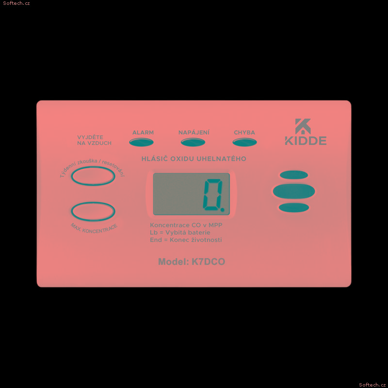 Detektor oxidu uhelnatého s LCD displejem - Model Kidde K7DCO