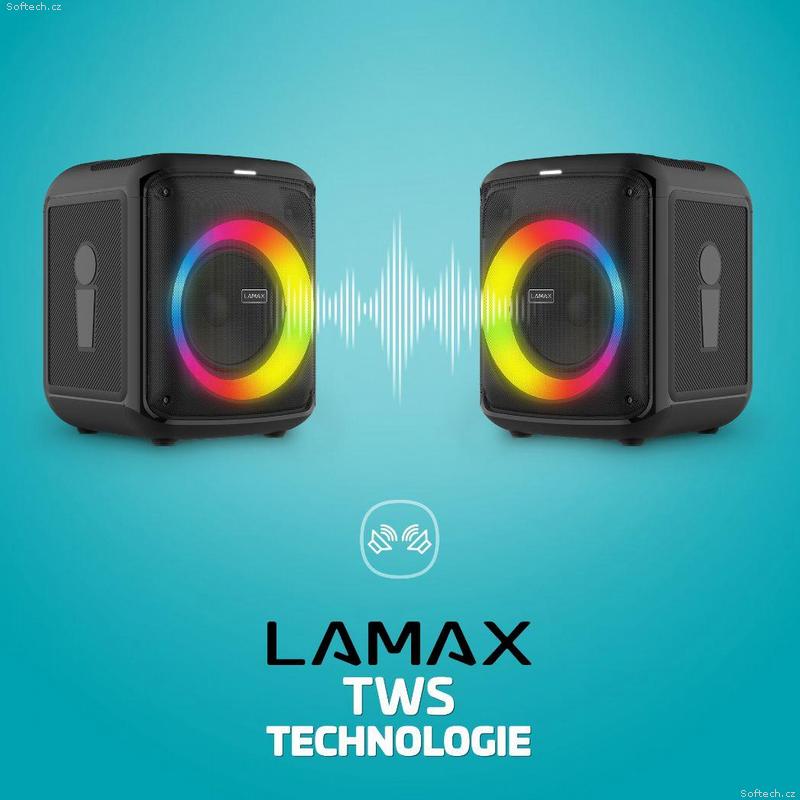 Nezáleží na tom, jestli chystáš oslavičku, chceš sledovat film, jdeš si zacvičit nebo jen poslechnout podcast, LAMAX PartyKing1 Play tě svým zvukem o výkonu 80 W naprosto odzbrojí. Kdyby to na večírek nestačilo, připojíš díky funkci TWS (True Wireless Stereo) další reprák a zdvojnásobíš výkon. Žádné zpoždění, jen čistý a vyrovnaný zvuk podpořený technologií BeatBass, která dodá koncertní rozměr a přímo tě vtáhne do každýho songu. Tu správnou atmosféru ještě dotvoří 9 nastavitelných LED efektů.