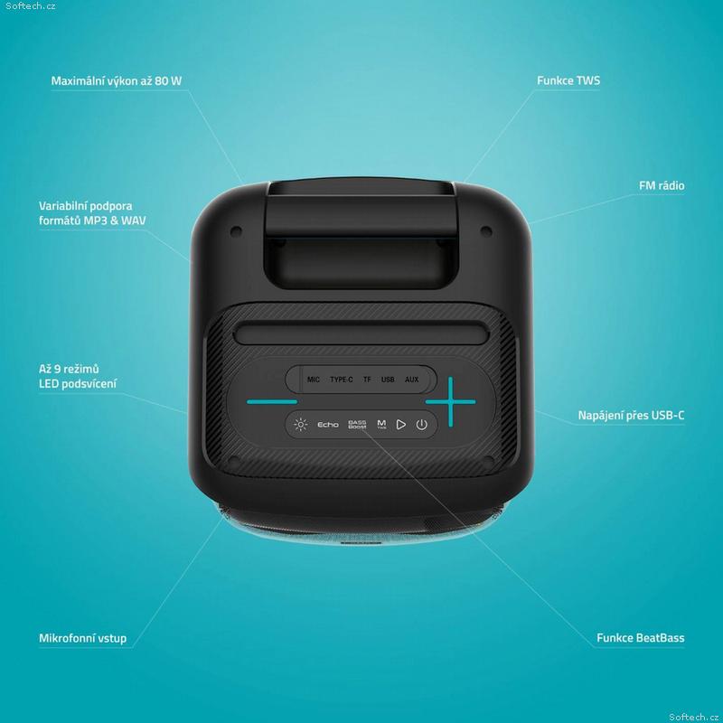 Reprák pracuje o maximálním výkonu 80 W, což už je slušný ozvučení.