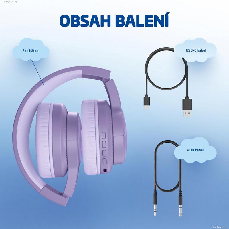 Sluchátka vydrží hrát až 20 hodin, takže děti mohou poslouchat hudbu nebo pohádky klidně celý den, a to ať už jsou doma nebo na cestách. Navíc s vestavěným mikrofonem se snadno připojí k online výuce nebo si zavolají s kamarády po cestě ze školy, a to vše bez nutnosti dalších zařízení.