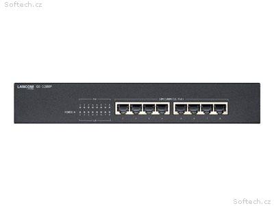 LANCOM GS-1208P - Prepínac - nerízený - 8 x 10, 100, 1000 (PoE+) - desktop, Lze montovat do rozvadece - PoE+ (65 W)