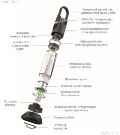 Na výběr máte ze tří světelných módů od 20 až po 750 lm s možností plynulého stmívání. O stavu baterie informuje světelný indikátor.