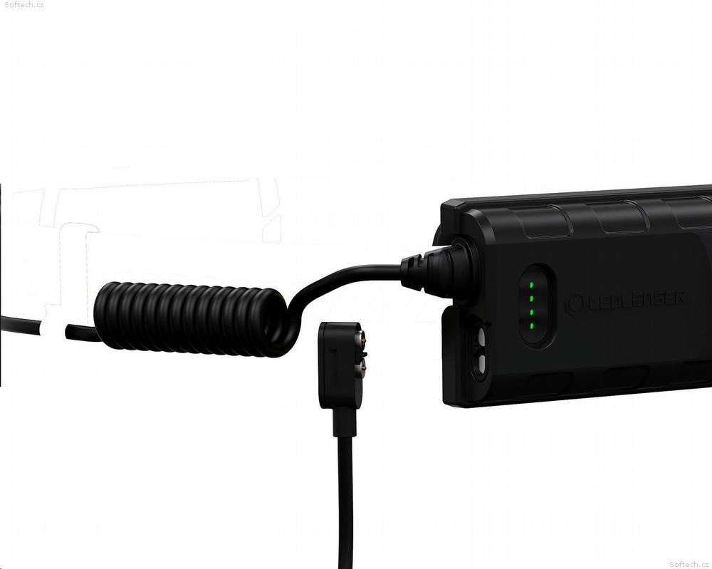 Svítilnu lze dobíjet pomocí nabíječky s odolným magnetickým konektorem.