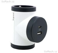 LEGRAND Revolution rozbočovač otočný 2x2P+T, nabíječka USB A+C, bílo-šedá