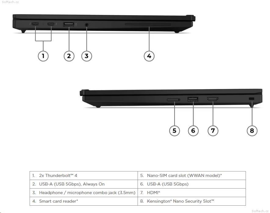 2x USB-C (Thunderbolt™ 4 / USB4 40Gbps), with USB PD 3.1 and DisplayPort™ 2.1