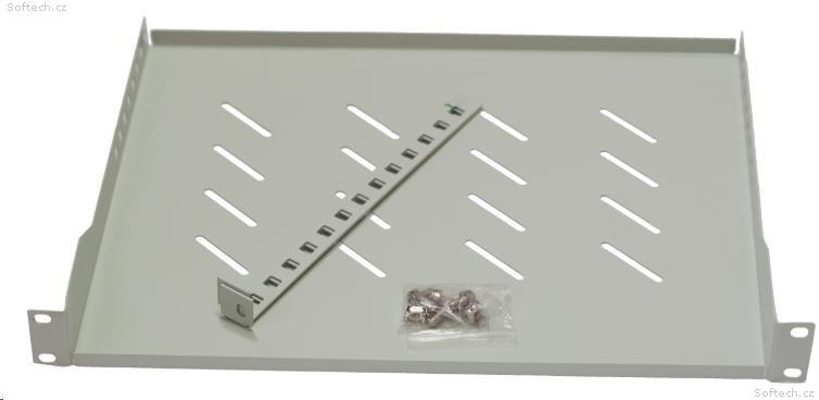LEXI-Net 19" police s perforací 1U, 650mm, nosnost 45kg, zadní nastavitelný úchyt, šedá