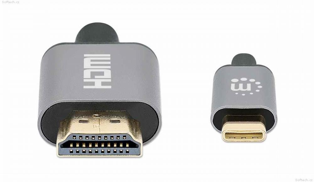 Manhattan kabel USB-C na HDMI, USB-C Male na HDMI Male, 2m, černá