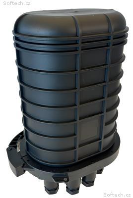Optická zemní spojka s možností instalace pod zem nebo ven, například na sloup. slouží pro spojení optických kabelů, v maximálním počtu 288 vláken v 12 vestavěných optických kazetách. Každá kazeta pojme až 24 svárů a to ve 2 řadách. Zemní spojka má krytí IP68. Součástí balení jsou teplem smrštitelné bužírky na ochranu kabelových vstupů.