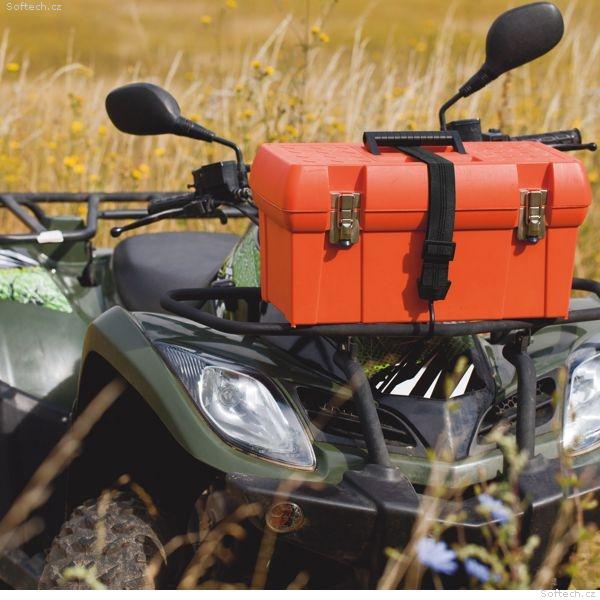 Speciální upínací popruh o šířce 40 mm zakončený háčky. Nastavitelná délka od 600~1 200 mm. Otáčivé háčky pro snadnější upevnění nákladu. Maximální nosnost 50 kg. Plastem kryté háčky zabraňující poškození nákladu.