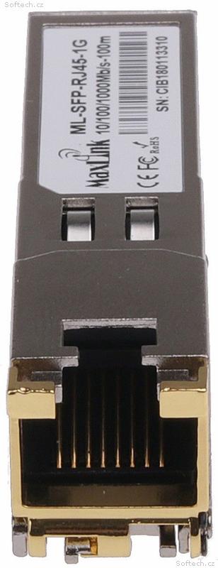 ML-SFP-RJ45-1G je Gigabitový SFP metalický modul s konektorem RJ45 pro metalický kabel. Jedná se o cisco kompatiblní modul. Dosah modulu je 100m.