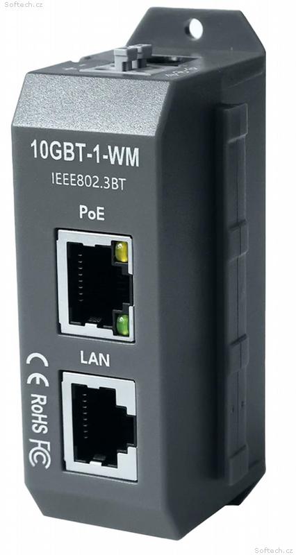 Maxlink 10GBT-1-WM je jednoduchý aktivní PoE injektor s podporou standardů 802.3af/at/bt a také 10G ethernetu (10/100M/1/2.5/10G). Je vybaven dvojicí stíněných ethernetových konektorů (1x vstup, 1x výstup) a napájení probíhá po 4 párech (napájení po 2 párech je podporováno).