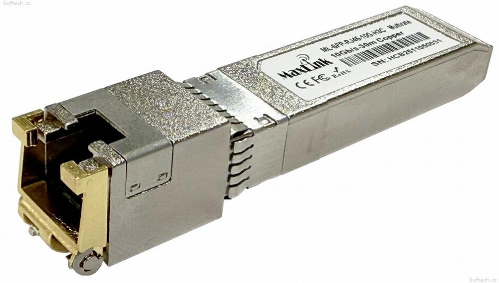 ML-SFP-RJ45-10G-H3C je 10 Gbps SFP+ metalický modul s konektorem RJ45 pro metalický kabel. Jedná se o cisco kompatiblní modul. Dosah modulu pro 10G přenos je 30m.