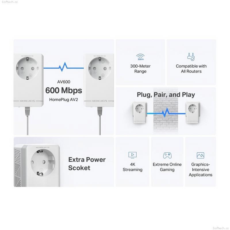 • Mercusys MP300P KIT AV600 Powerline průchozí