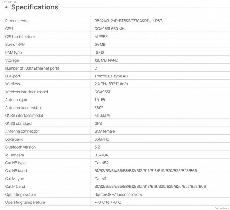 MikroTik KNOT LR8G kit je kompaktní brána pro aplikace LoRA, připravená na okamžité použití. Byla navržena tak, aby přinášela cenově dostupné a spolehlivé řešení i v odlehlejších oblastech. Podporuje LTE CAT-M1 a NB2, Bluetooth 5.2, WiFi 2.4 GHz, GPS a je vybavena dvěma ethernetovými porty (1x PoE-in, 1x PoE-out), díky čemuž je flexibilní pro jakékoliv nasazení v oblasti IoT.