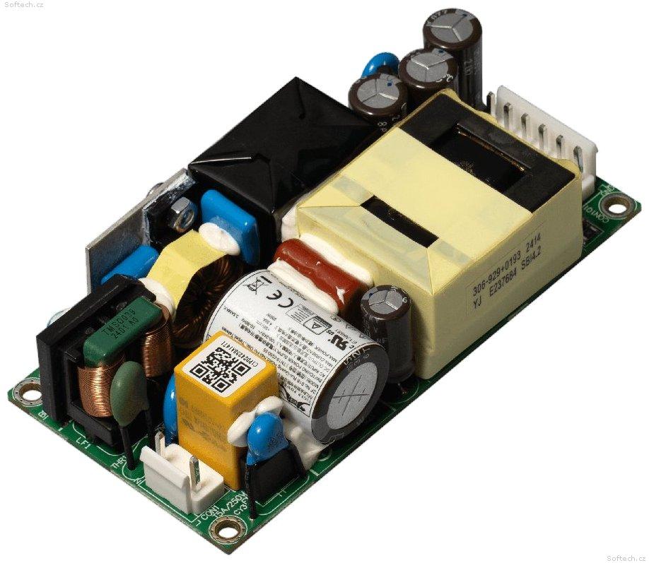 Specializovaný napájecí zdroj od společnosti MikroTik poskytuje stabilní výstupní napětí 55 V DC při proudu 4,5 A. Konstrukce typu Open Frame bez ochranného krytu je navržena pro přímou instalaci do zařízení nebo do vlastního pouzdra.