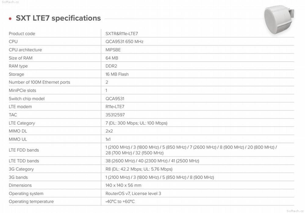 LTE rychlosti: 300 Mbps DL / 100 Mbps UL