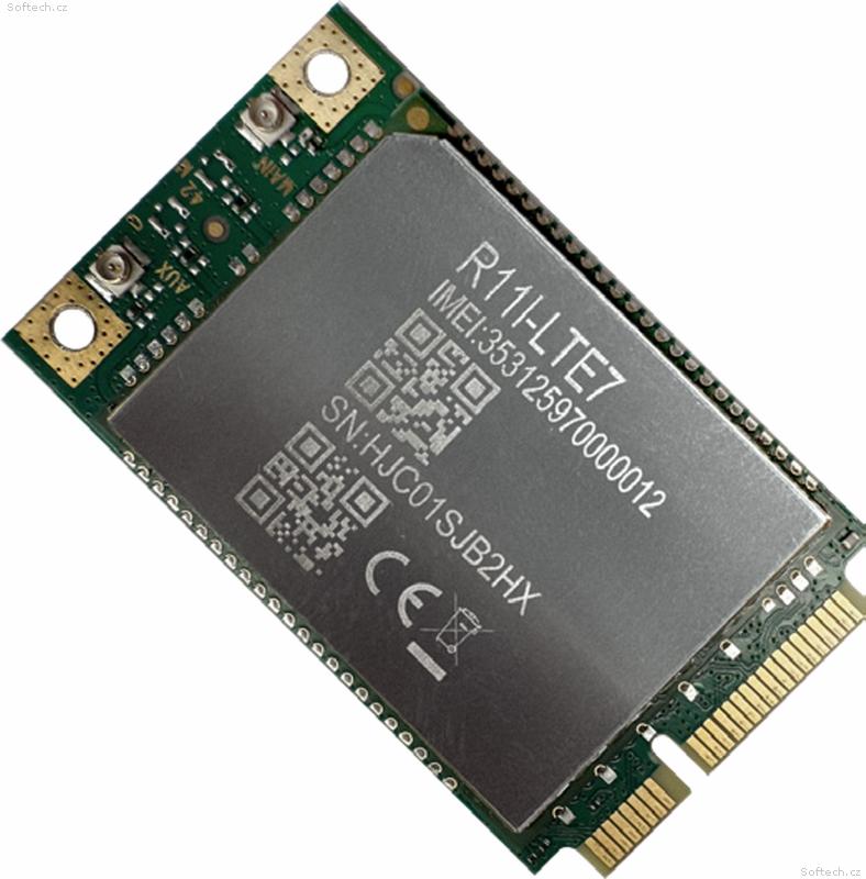 MikroTik R11e-LTE7 je LTE modem ve formátu miniPCIe karty, který podporuje sítě 4G LTE a 3G. Je vhodný pro RouterBoardy a může sloužit jako drop-in náhrada za R11eL-FG621-EA, přičemž nabízí vyšší rychlost, podporu LTE kanálů 28 a 32 a menší velikost.