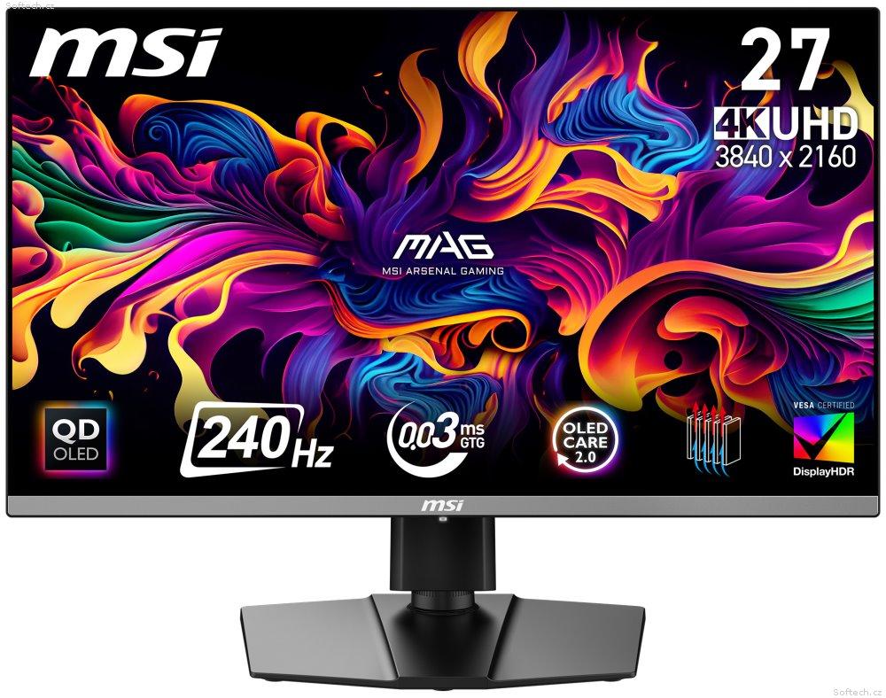 MSI LCD MAG 272UP QD-OLED X24, 26.5", QD-OLED, 4K UHD, 240Hz, 0.03ms, Black, 3R