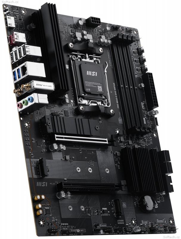 Základní deska PRO B840-S EVO WIFI6E nabízí jednoduchý design s harmonickým barevným schématem, které se dokonale hodí k černým PC sestavám. Je vybavena mnoha exkluzivními funkcemi MSI, Wi-Fi 6E s anténou EZ Antenna, 2.5G LAN a PCIe 4.0 M.2 s chladičem M.2 Shield Frozr. Deska je plně připravena pro procesory řady AMD Ryzen 9000.